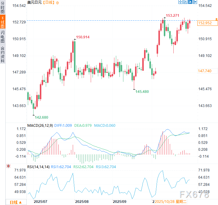 (美元兑日元日线图,来源:易汇通)北京时间14:22,美元兑日元交投于152.98/99。